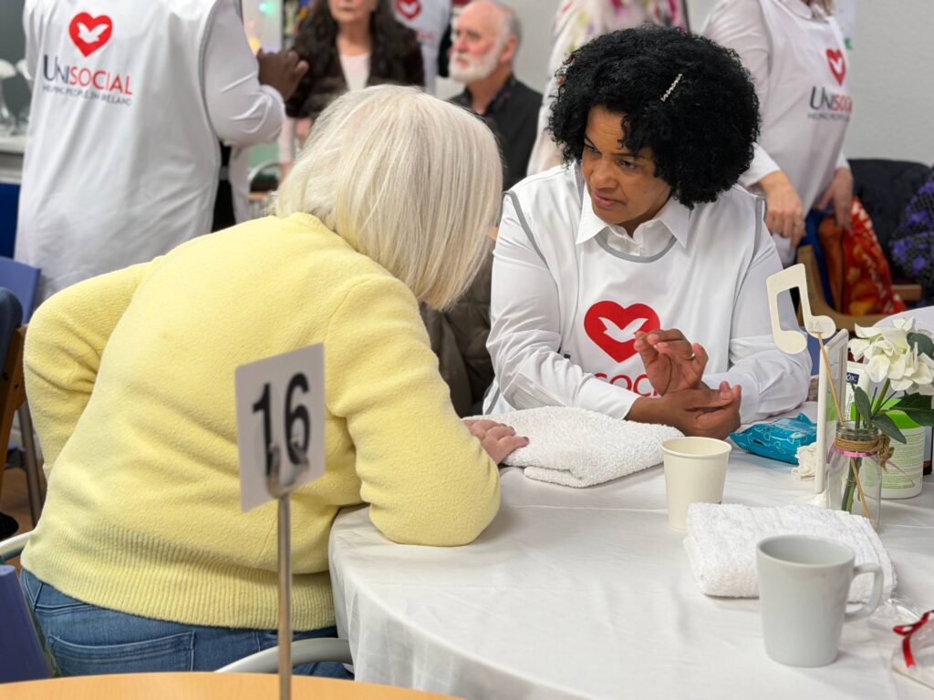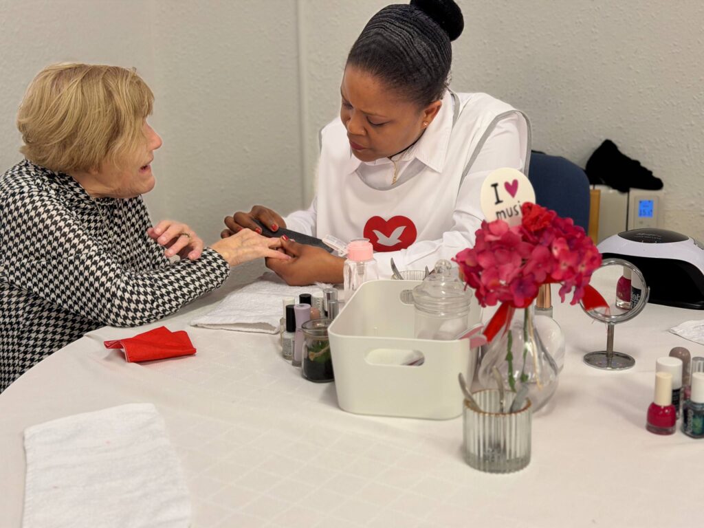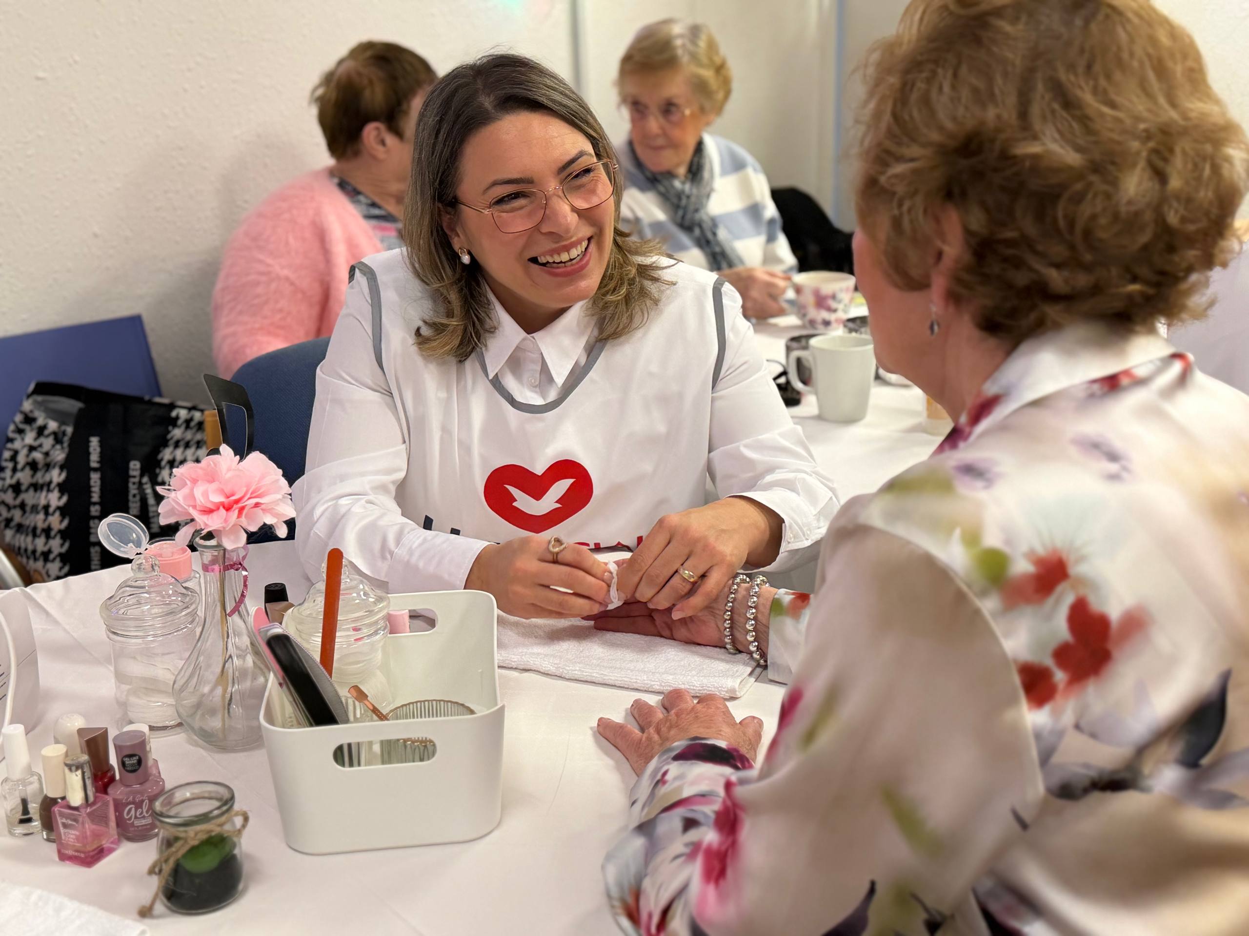 The event’s objective was to benefit the elderly through affection and attention, listening to their life stories, providing moments of joy with entertainment (music and dancing), beauty treatments such as manicures and massages, and the comfort of an afternoon tea.